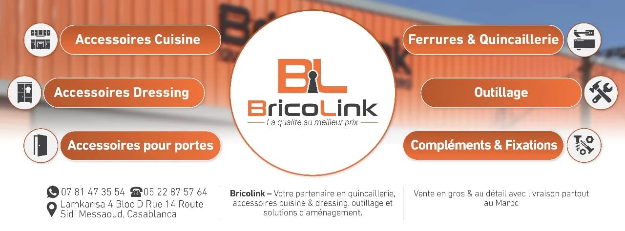 Bricolink est une entreprise spécialisée dans la distribution de quincaillerie pour cuisines, dédiée aux professionnels du bâtiment, aux artisans, ainsi qu’aux particuliers exigeants. Nous proposons une large gamme de produits de qualité allant des charnières, coulisses, poignées, systèmes de tiroirs, fixations, jusqu’aux accessoires d’aménagement intérieur. Notre mission est de fournir des solutions fiables, durables et esthétiques qui répondent aux besoins des cuisinistes, menuisiers et bricoleurs avertis. Grâce à un stock bien géré et à des partenariats solides avec les plus grandes marques du secteur, nous garantissons des livraisons rapides et un excellent rapport qualité-prix. Chez Bricolink, le service client est au cœur de notre engagement. Nous accompagnons nos clients dans leurs projets avec des conseils techniques personnalisés, des fiches produits détaillées, et une assistance réactive. Que vous soyez en phase de conception, d’installation ou de rénovation, notre équipe est là pour vous aider à trouver les meilleures solutions. Bricolink, c’est l’alliance entre expertise technique, service de proximité et passion du métier. Rejoignez notre réseau de clients satisfaits et donnez vie à vos projets de cuisine avec la quincaillerie qu’il vous faut.