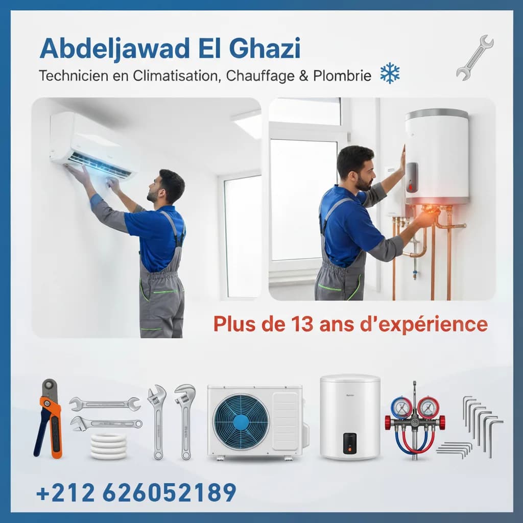 من مدينة تنغير، حرفي متخصص فـ تركيب أنظمة التكييف والسباكة، تجربة كثر من 13 عام فهاد الميدان. خبرة كبيرة فمشاريع مختلفة، سكنية، تجارية وحتى صناعية، وخدمت مع زبناء من جميع أنحاء المغرب. كنخدم بكل احترافية، وكنعتمد على الدقة، النظافة، واحترام الوقت والمعايير. كنقترح حلول عملية ومناسبة لكل حالة، سواء تعلق الأمر بالتركيب من الصفر أو الصيانة أو الإصلاح. متبع آخر التطورات فالمجال، وكنستعمل أدوات وتجهيزات حديثة، إلى كنتي كتقلب على حرفي متمكن، صادق، ومجرب فالتكييف أو السباكة، أنا موجود، ومستعد نخدمك بأحسن ما عندي. مرحبا بأي تواصل أو استفسار
