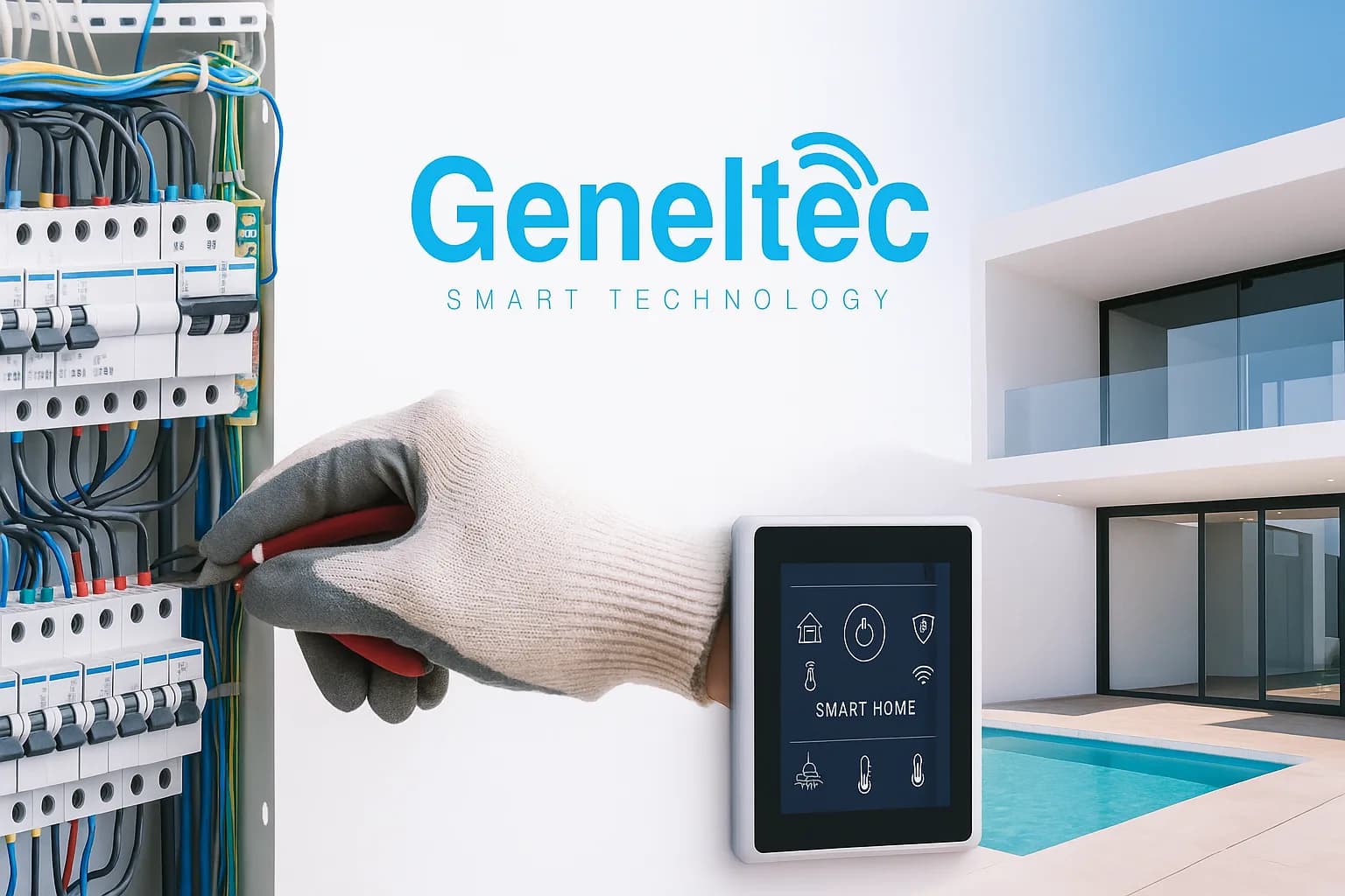 GENELTEC – Électricité & Smart Home Solutions GENELTEC est une entreprise marocaine spécialisée dans les installations électriques complètes pour villas, bâtiments résidentiels et projets commerciaux. Nous offrons des solutions modernes et intelligentes pour rendre chaque espace plus sûr, plus efficace et plus confortable. Nos domaines d’expertise : ⚡ Électricité du bâtiment et industrielle – Installation, rénovation et maintenance complètes 🏠 Smart Home – Commande intelligente de l’éclairage, volets, climatisation, et sécurité 🔒 Serrures et portes connectées WiFi – Ouverture par empreinte, code ou carte 📷 Caméras & visiophones – Surveillance, interphonie et contrôle d’accès ☀️ Énergie solaire & bornes de recharge – Solutions écologiques et durables Chez GENELTEC, nous combinons savoir-faire technique, technologie moderne et engagement envers la qualité pour garantir la satisfaction de nos clients. Basés à Casablanca, nous intervenons dans tout le Maroc, en accompagnant architectes, promoteurs, et particuliers dans leurs projets.