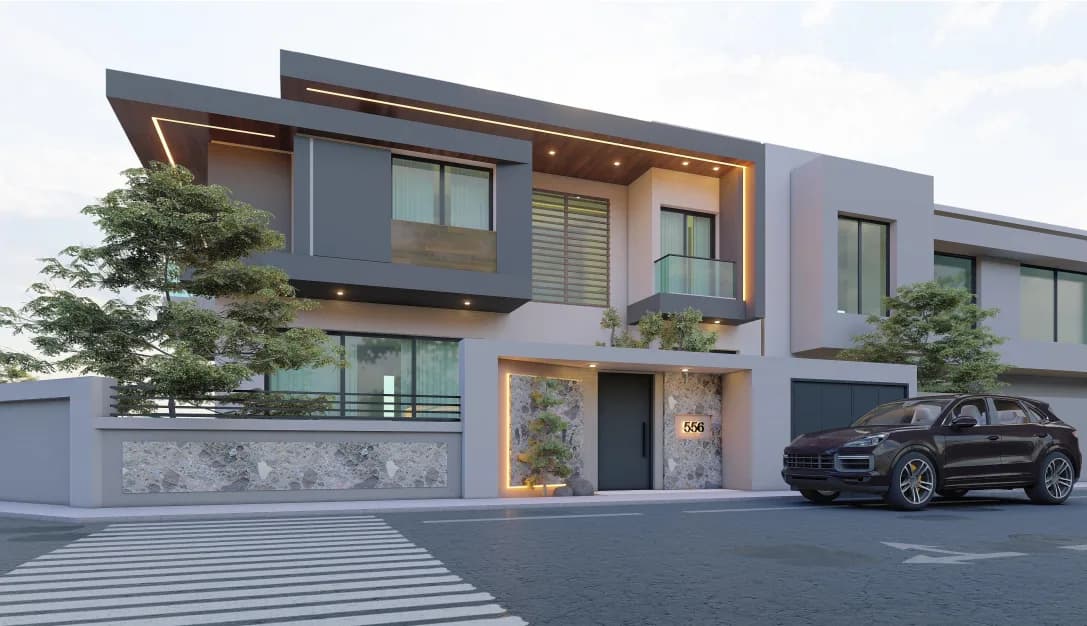 Travaux de gros œuvre d’une villa haut standing : structure en béton armé avec coffrage en panneaux bakélisés pour un béton brut de qualité. Maçonnerie en double cloison pour une meilleure isolation et solidité. Escaliers type crémaillère intégrés dans la structure. Exécution précise conforme aux normes techniques du bâtiment.