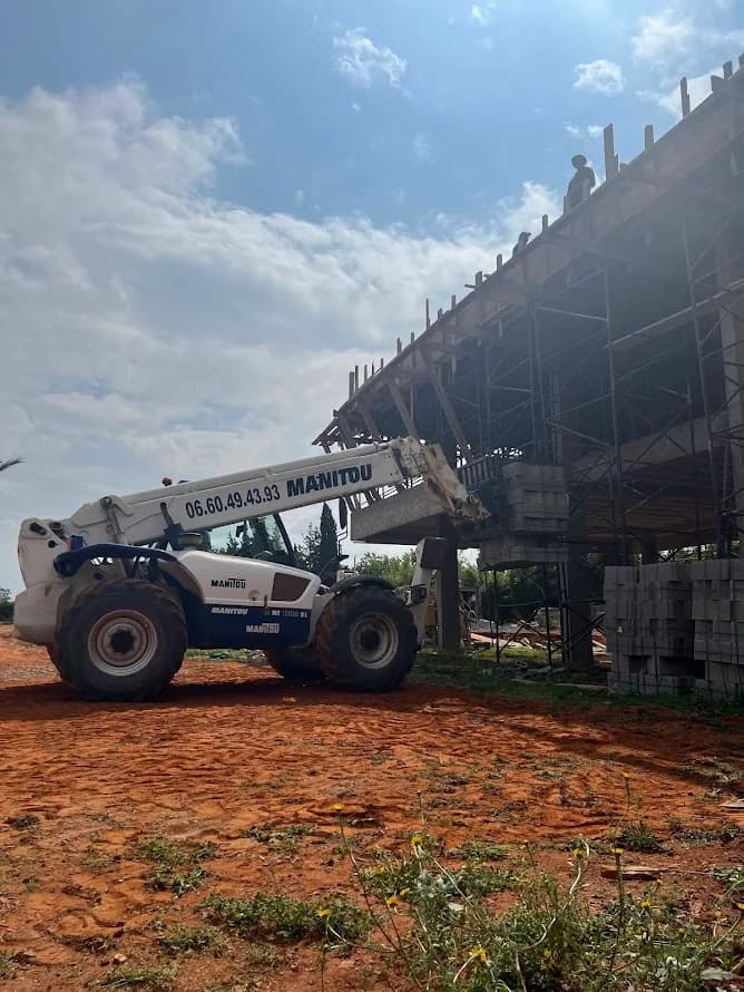 Location d'engins et Manitou au Maroc. Locarad est votre partenaire de confiance pour la location de matériel de levage, de manutention et de chantier, spécialisé dans les chariots télescopiques Manitou avec conducteur. Basés à Témara, nous intervenons partout au Maroc pour accompagner vos projets dans les secteurs du BTP, de l’agriculture, de la logistique, ou de l’événementiel. ✅ Nos services : - Location de Manitou télescopique - Prestation avec conducteur expérimenté 🔧 Applications : - Levage de matériaux sur chantier - Montage de structures métalliques ou charpentes - Chargement / déchargement de palettes - Travaux agricoles (palmiers, serres, etc.)