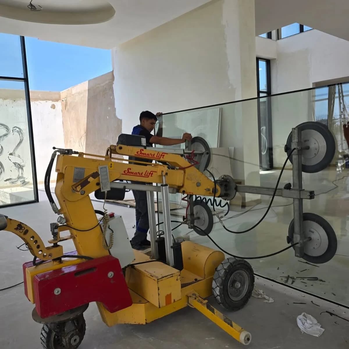 Nous disposons de matériel de manutention à la location et la vente. Nous sommes spécialisé dans la pose de verre hors gabarit à l’aide de ventouse et de mini grue