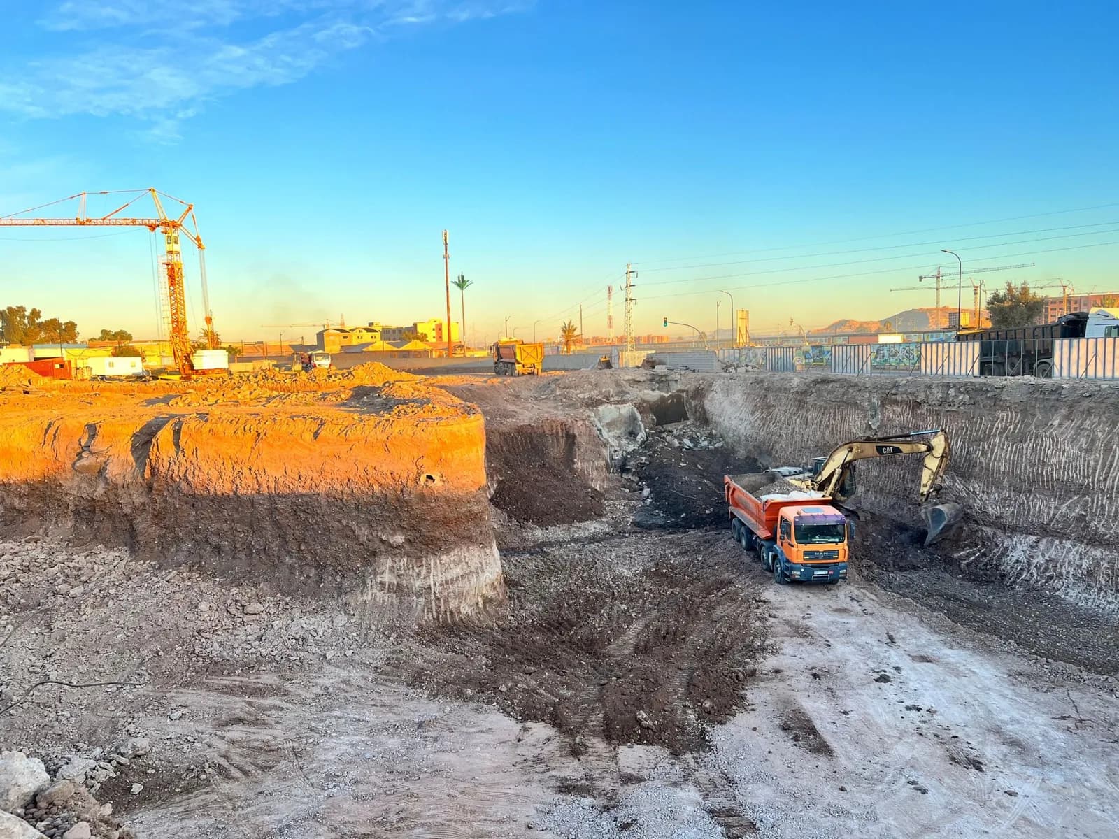 ’excavation complète d’un terrain en plein cœur de Marrakech, préparant ainsi le site pour la création d’un sous-sol et la construction d’un immeuble R+5. Ce chantier a représenté un véritable défi technique, notamment en raison de la proximité immédiate des bâtiments voisins, nécessitant une gestion rigoureuse pour assurer la stabilité.